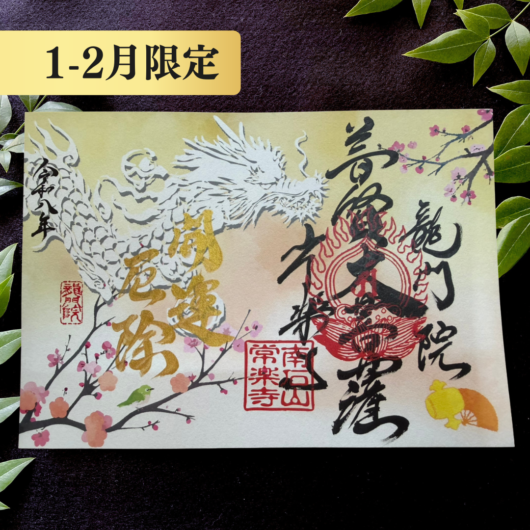 特別御朱印 1月・2月(6日:辰の日限定)「龍と梅待つメジロの初春」 金黒2枚セット